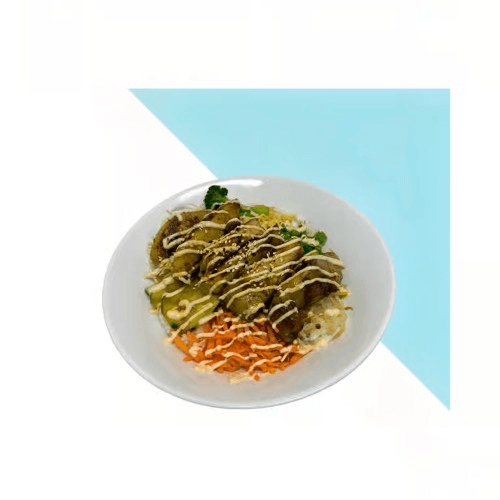 Bean sprouts, broccoli, buttered corn, carrots, green onions, marinated cucumbers, garlic soy yum yum sauce