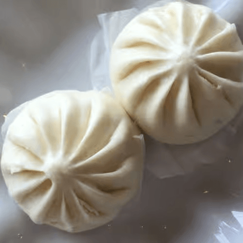 2 fluffy steamed buns filled with Chinese BBQ pork